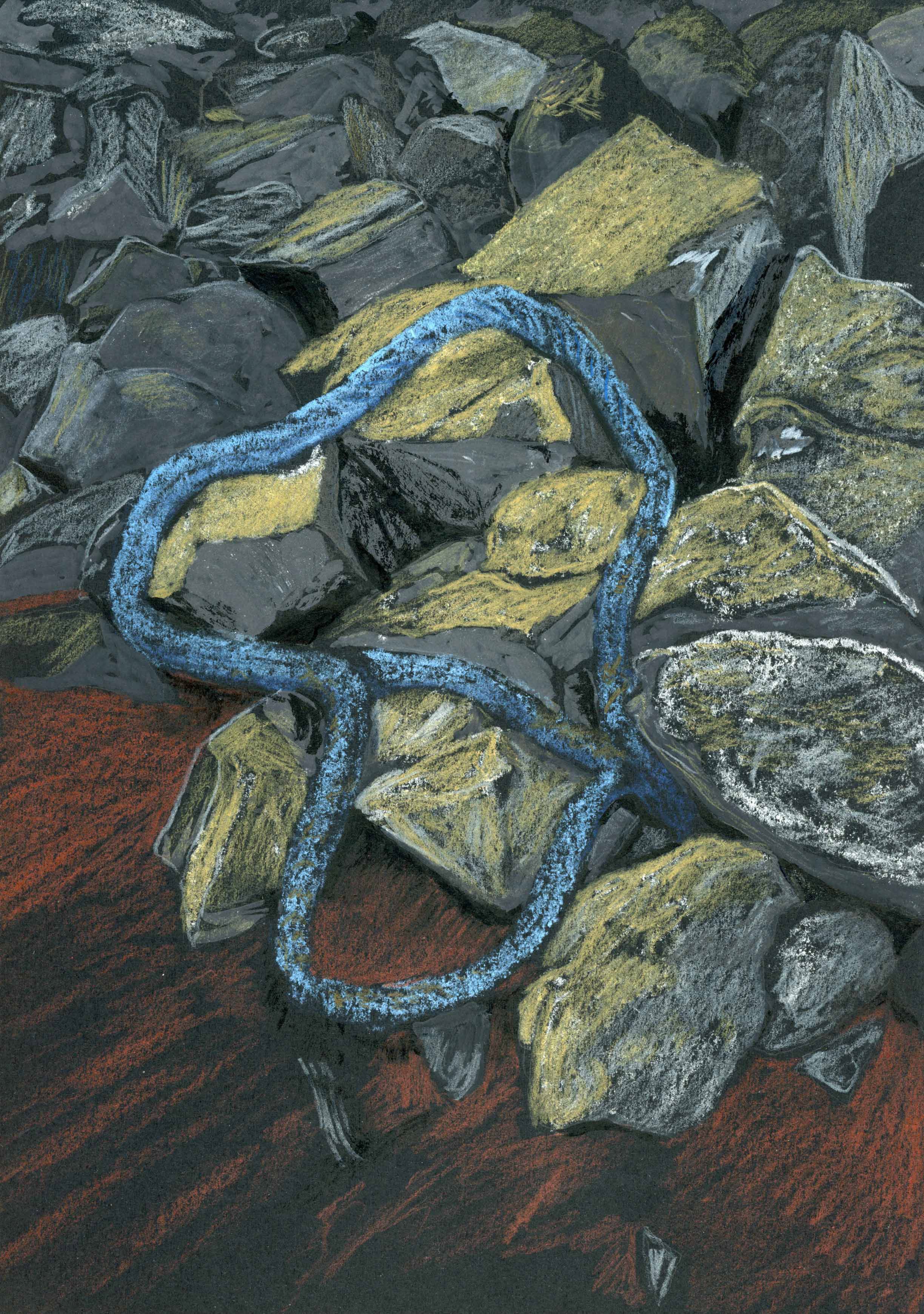 gouache, chalk, graphite, and coloured pencil on paper, 11.7” x 8.3”. Along the Lines of Paths and Portals, Deiglan Gallery, Akureyri, Iceland