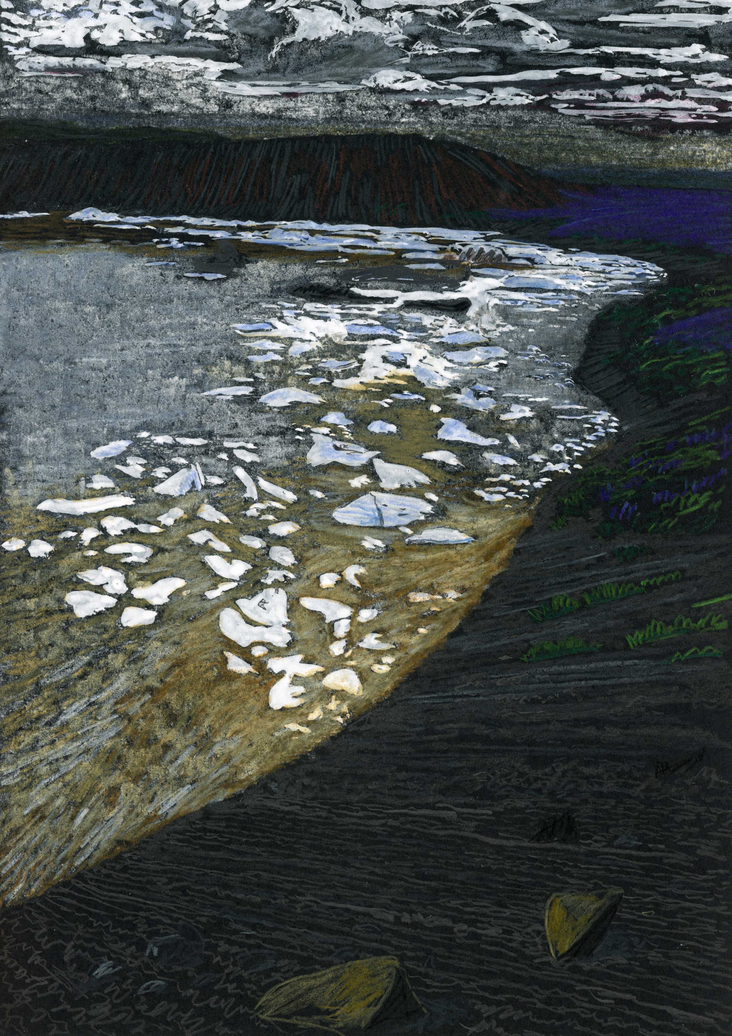 gouache, chalk, graphite, and coloured pencil on paper, 11.7” x 8.3”. Along the Lines of Paths and Portals, Deiglan Gallery, Akureyri, Iceland